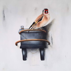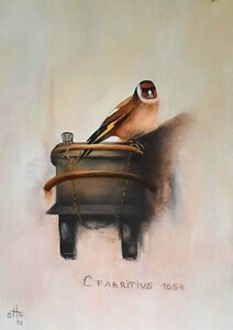 2019Geïnspireerd door C Fabritius welke in 1654 zijn Putter schilderde is Mijn Putter gerealiseerd op paneel van 1.20-1.20 cm.